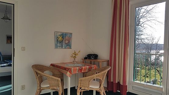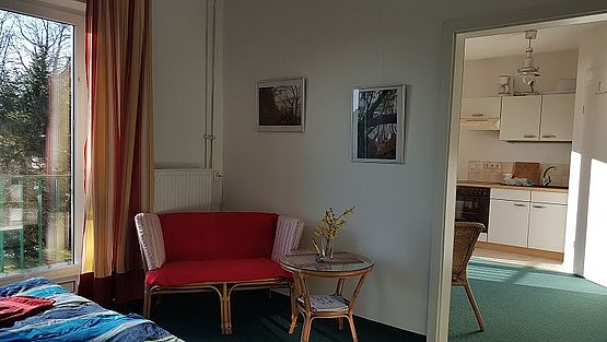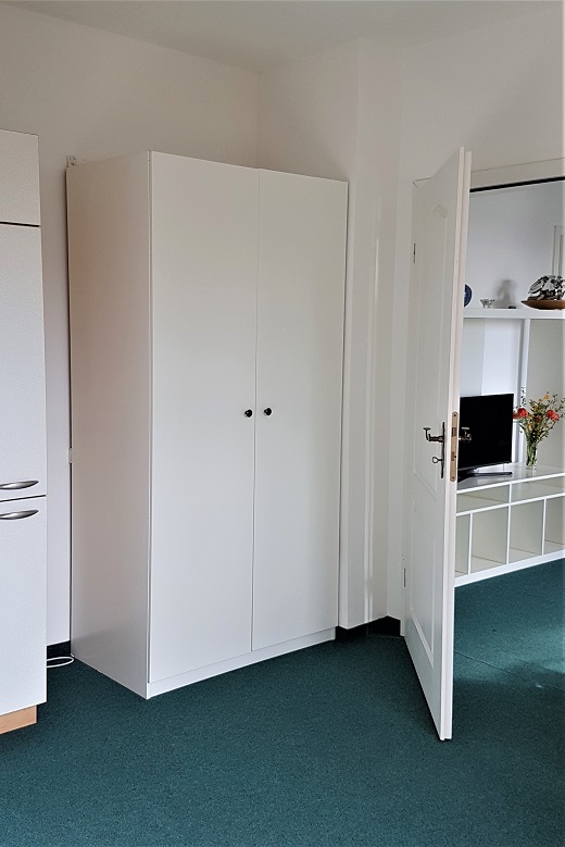 Erholung zwischen Meer, Strand und Wald, Entspannung in unberührter Natur. Das 2-Zimmer-Apartment MARKAB bietet im Winter einen schönen Ausblick über den Bodden. Im Frühling blühen vor den Fenstern die Obstbäume. Es eignet sich hervorragend als Basis für vielseitige Urlaubserlebnisse für 2 Personen. Im Apartment steht ein Doppelbett von 180 x 200 cm. Fernsehregal, Kleiderschrank, Sitzecke und Küchenzeile vervollständigen die leichte Ausstattung. Es gibt einen Esstisch, einen Kühlschrank mit Tiefkühlfach, Wasserkocher, Toaster, Kaffeemaschine sowie einen Herd mit Backofen. Das Duschbad mit WC bietet zusätzlich für die kalte Jahreszeit einen Heizlüfter. Ein Fön ist vorhanden. Auch diese Wohnung ist mit den üblichen Verbrauchsmaterialien ausgestattet. Die Betten sind frisch bezogen und Handtücher liegen bereit.