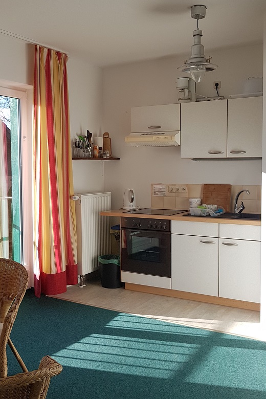 - Küchenzeile mit 4-Plattenherd, Backofen,Toaster, Wasserkocher, Kühlschrank mit Gefrierfach und Kaffeemaschine